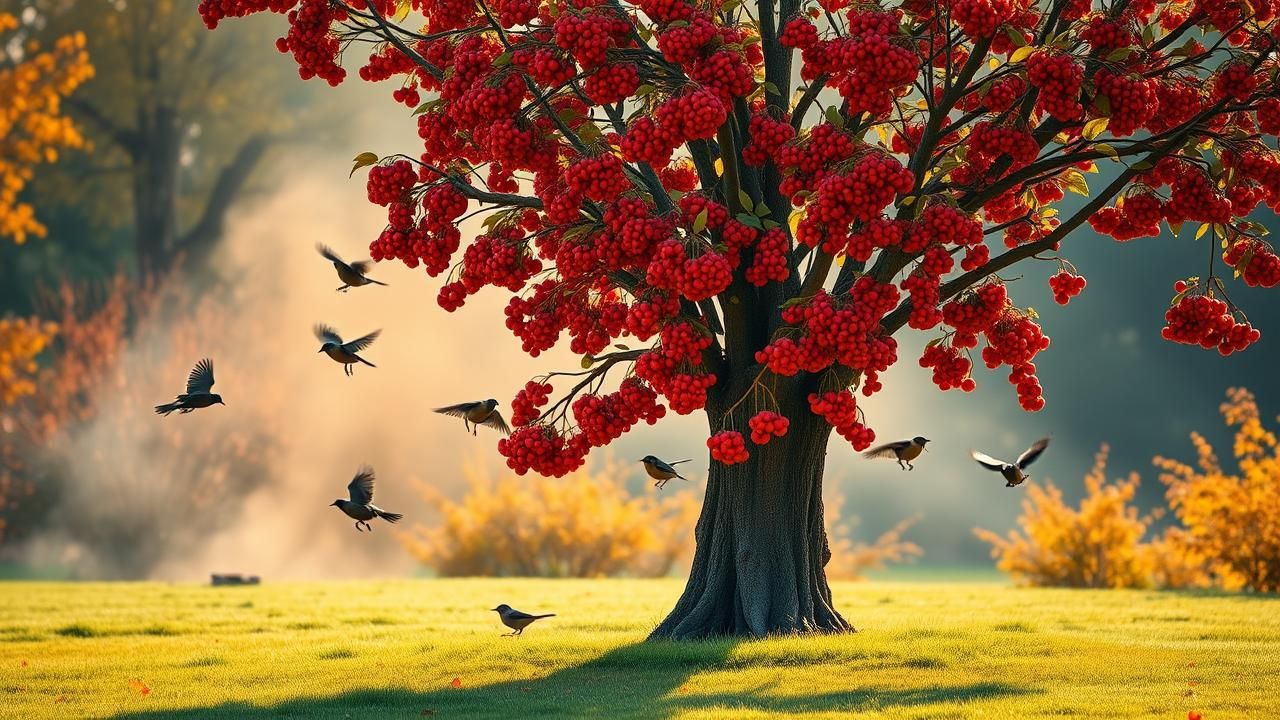 Ce qui fascine, c’est que les oiseaux ne se contentent pas de manger. Ils s’approprient l’arbre. Les grives, par exemple, arrivent en migration et passent plusieurs semaines à se nourrir avant de repartir vers le sud. Le sorbier devient alors une escale stratégique, un relais énergétique dans leur long voyage. Et quand les températures chutent, les baies, même gelées, restent disponibles, offrant une ressource fiable alors que les autres fruits ont disparu.