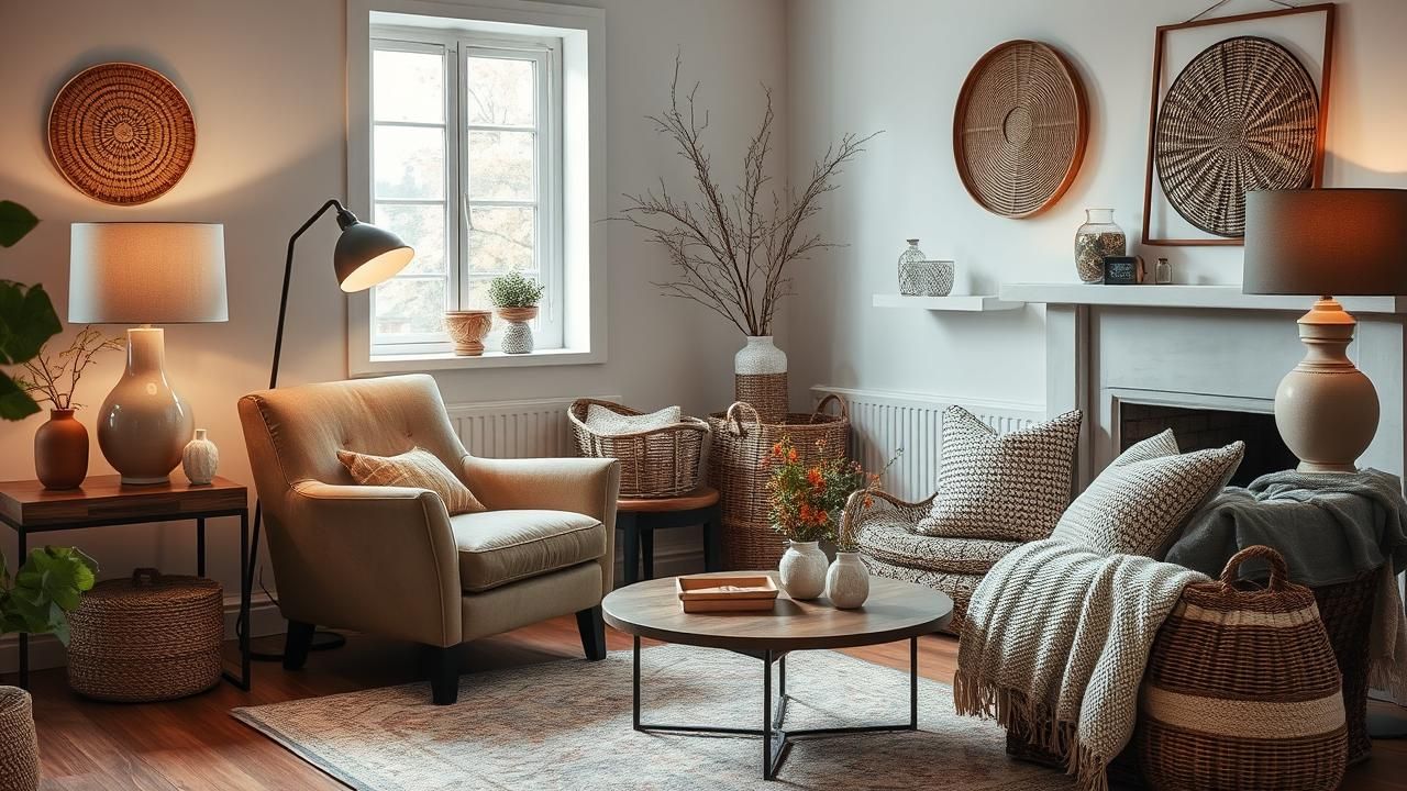 Les accessoires sont souvent les alliés les plus puissants de la décoration automnale. Un plaid à gros motif, une suspension en fibres naturelles, une vaisselle aux tons ocres ou moutarde — ces éléments apportent chaleur et cohérence à l’espace.