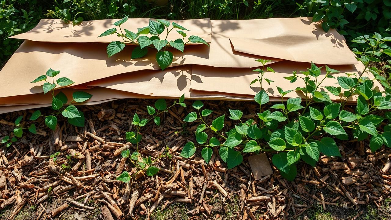 Le paillage épais est un excellent allié pour prévenir le retour. Une couche de 10 à 15 cm de déchets végétaux (feuilles mortes, tontes de gazon, écorces) maintient l’obscurité au niveau du sol et empêche les graines ou fragments de racines de se développer. En outre, un sol bien couvert est moins sujet à l’érosion et garde mieux l’humidité.