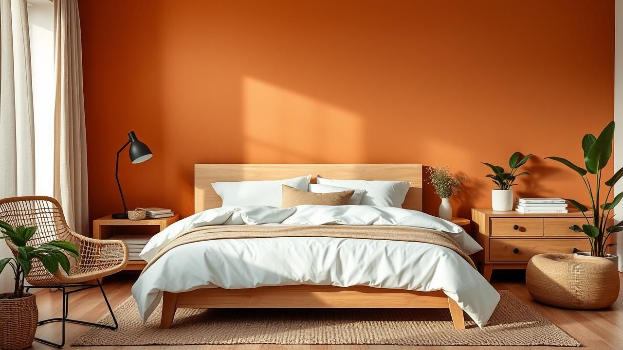 Le papier peint permet d’ajouter du relief, du graphisme, sans engager une transformation complète. Un motif géométrique, ethnique ou vintage en terracotta peut devenir le point focal de la chambre. « J’ai choisi un papier peint avec des motifs berbères en terracotta, raconte Élise. C’est plus vivant qu’une peinture unie. »